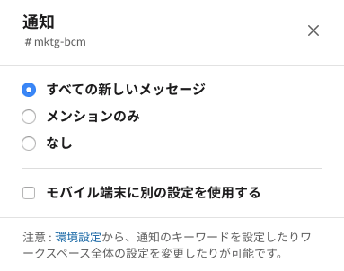 もう一つは、自分に該当するチャンネルの通知はオンにしておくか、未読をまとめて確認すること。