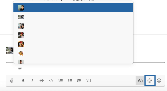↑下部の「@」を押すと、メンバーが一覧で表示される。