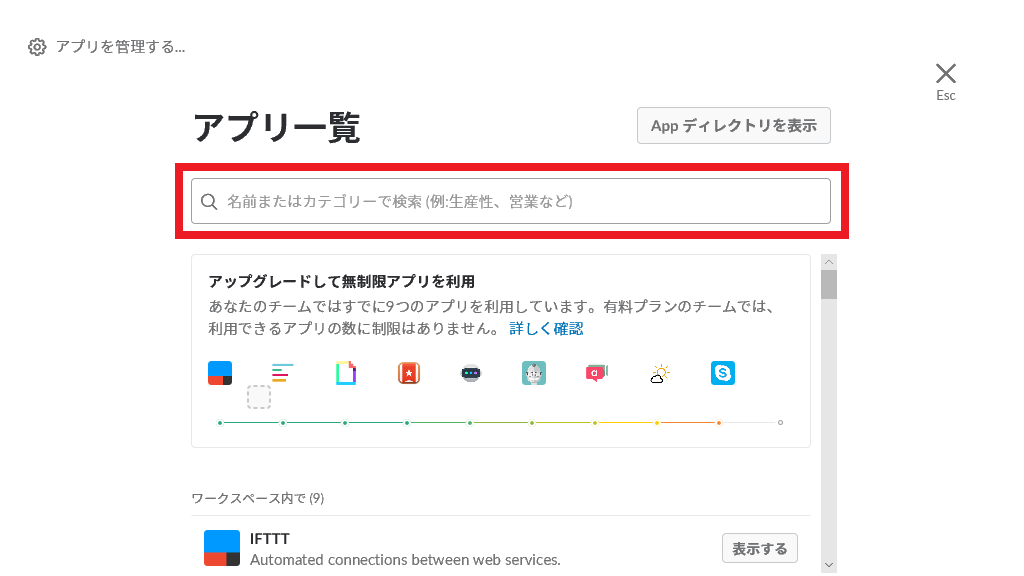2. すると、アプリ一覧が表示されます。上部の検索窓に「Trello」と入力して検索してアプリケーションを検索しましょう。
