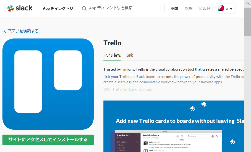 4. Trelloアプリのインストール画面が出てくるので「サイトにアクセスしてインストールする」ボタンを押します。