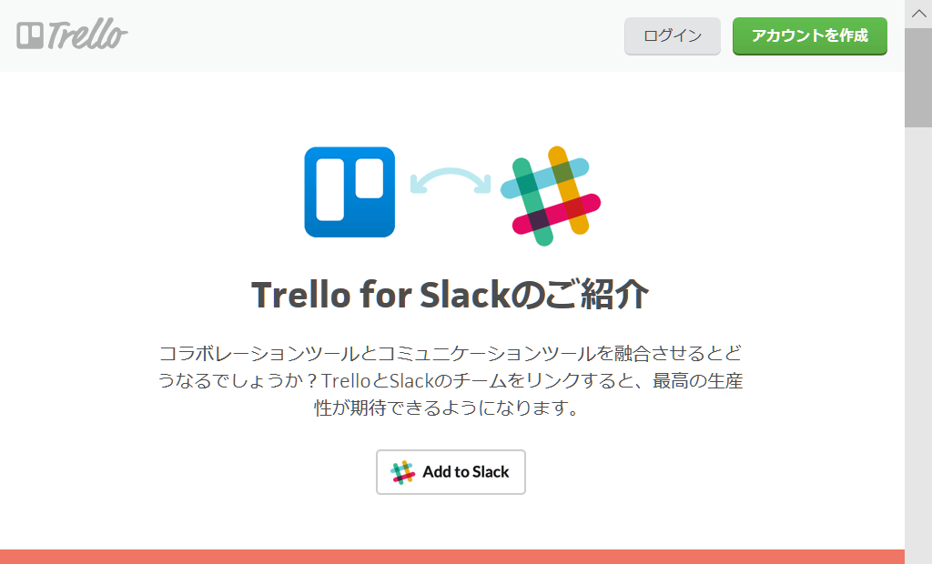 6. 途中で、Trelloへのログインが求められます。Trelloにアカウントがある場合はこのままログインしましょう。まだアカウントをお持ちでない場合は「アカウントを作成」リンクをクリックして、Trelloのアカウントを作成します。