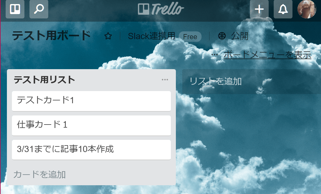 ここまでで、Trelloとの連携が完了しました。
