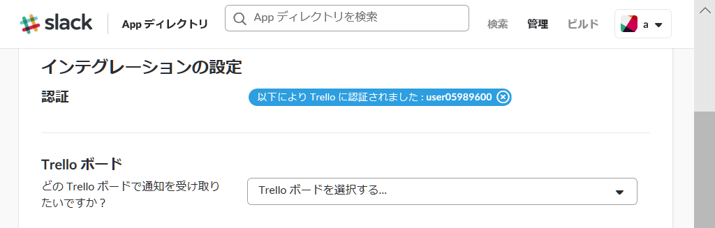 TrelloからSlackに設定するときは、通知したいTrelloボードと通知先のSlackチャンネルは既に決まっています。