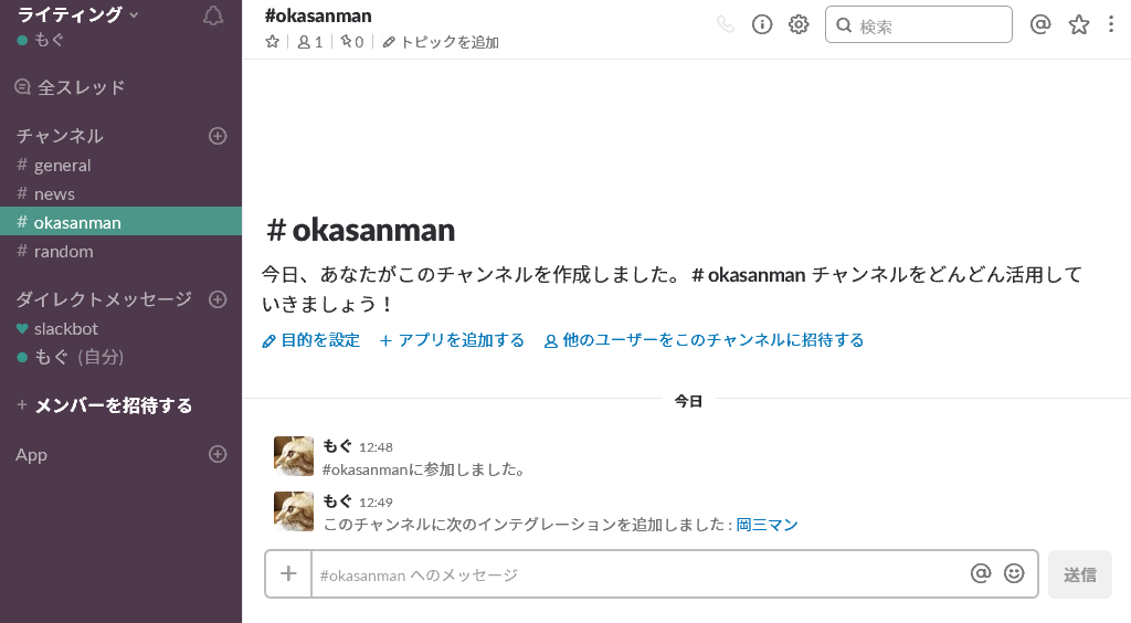 5.設定が成功していると指定したチャンネルにメッセージが表示されています。これで連携完了です。