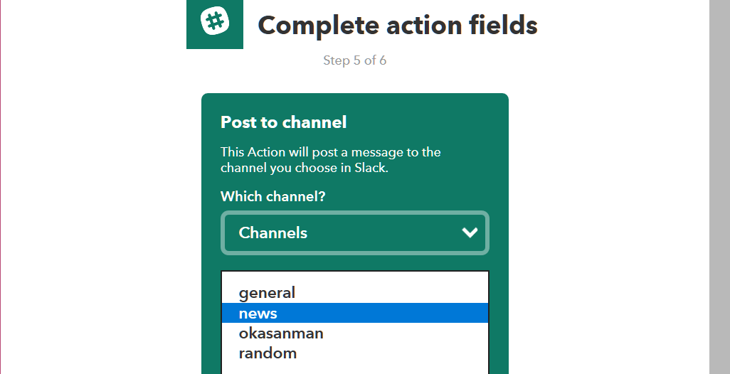 1.Twitter連携と同じ要領で、IFTTTとSlackを連携させます。