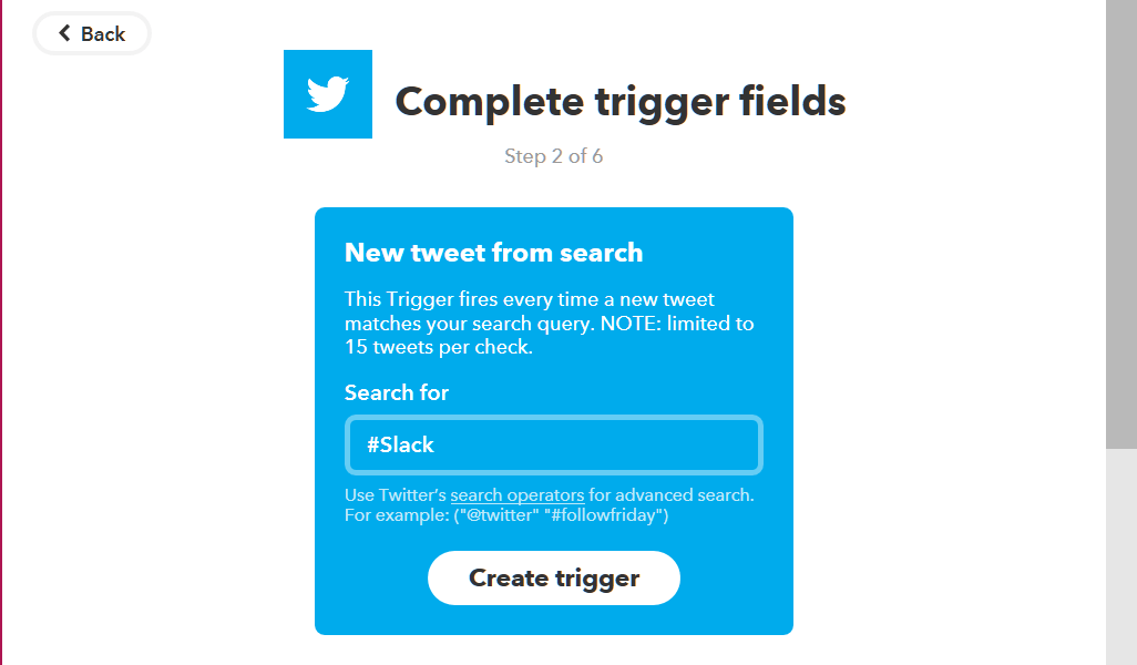Twitterで特定のツイートをSlackに連携する場合、IFTTTで検索条件を指定した連携をするのが手っ取り早いです。この方法を使えば、エゴサーチも簡単にできます。以下、手順を説明しますので試してみてください。