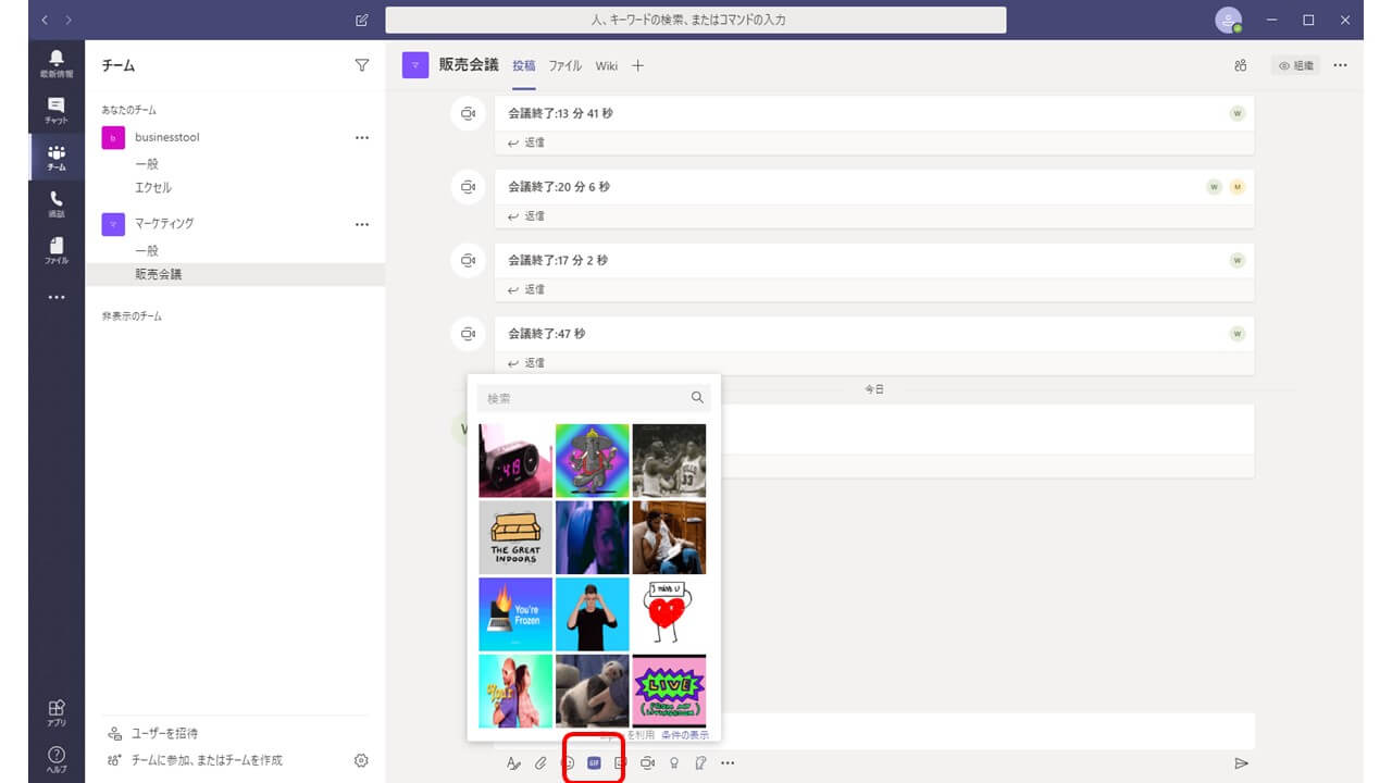 Microsoft Teamsでは、絵文字・GIF画像・ステッカーなどを使ってメッセージに気持ちを添えることができます。