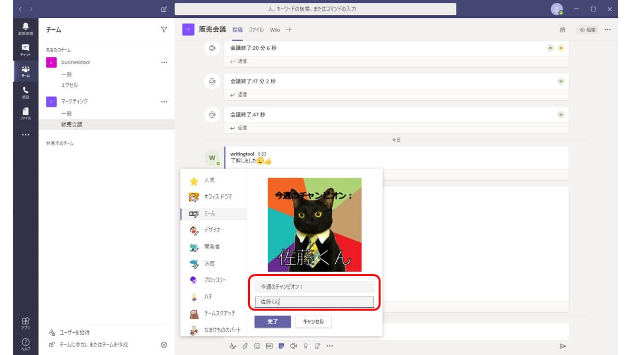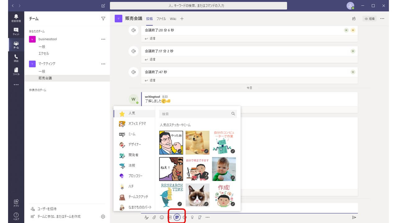 Microsoft Teamsのステッカー機能は、伝えたいセリフを画像に含めることによって、気持ちを軽いトーンで伝えることができるツールです。