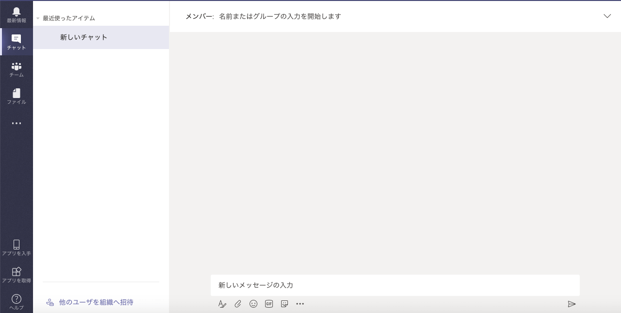 ↑「チャット」「チーム」「ファイル」のみしか選択できません