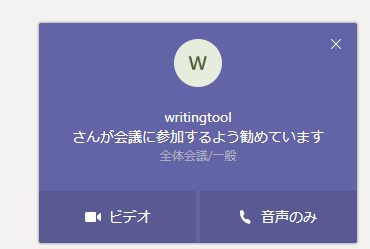 その通知に対して、「ビデオ」か「音声のみ」を選択するだけで、会議に参加することができます。