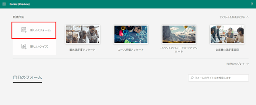 フォーム作成する際は、まず[新しいフォーム]のアイコンをクリックします。