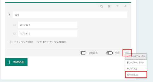 Microsoft Formsでは質問項目ごとに細かい設定が可能です。