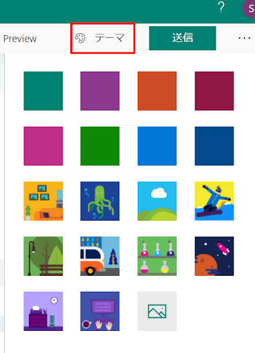 Formsのアンケート画面は、お好みでテーマの設定・変更が可能です。