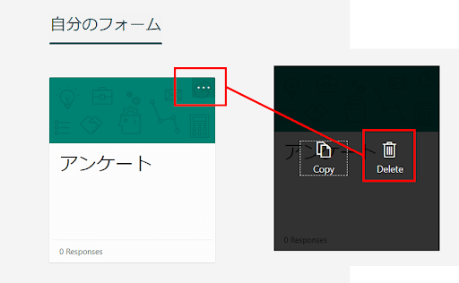 またアンケートを作成する中で、アンケート自体が不要になった場合は、Microsoft Formsのトップ画面から簡単に削除できます。