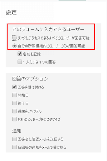 一方、「自分の所属組織内のユーザーのみが回答可能」とすると、回答者が識別できます。