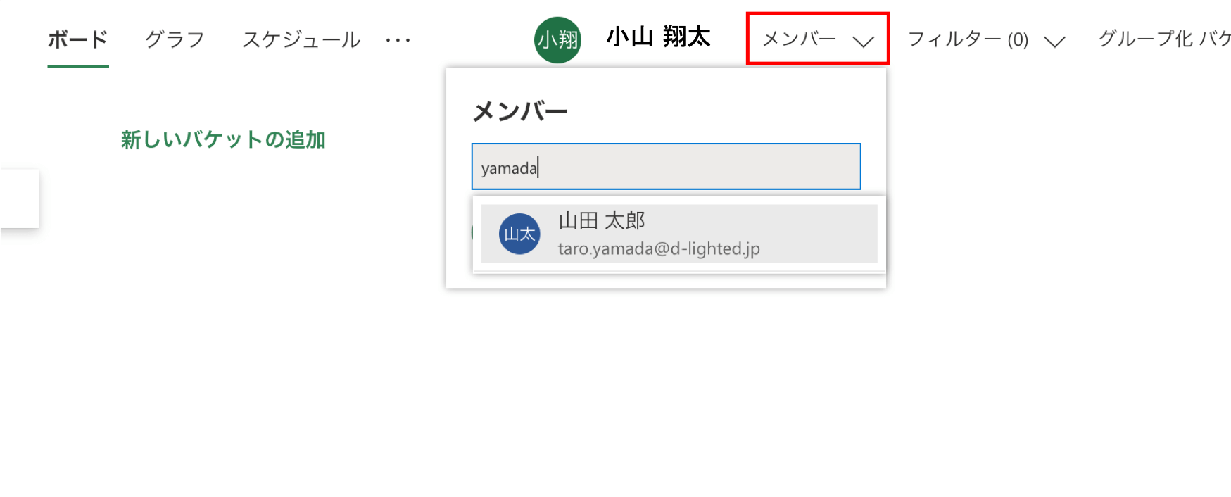 右上のメニューの「メンバー」の箇所をクリックすると、メンバーの検索バーが開きます。