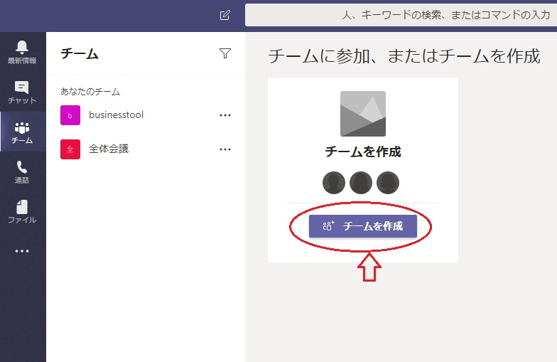 そうしたら「チームを作成」をクリックして、自分や自分のグループに適した選択肢を選びながら、チームを作成してください。