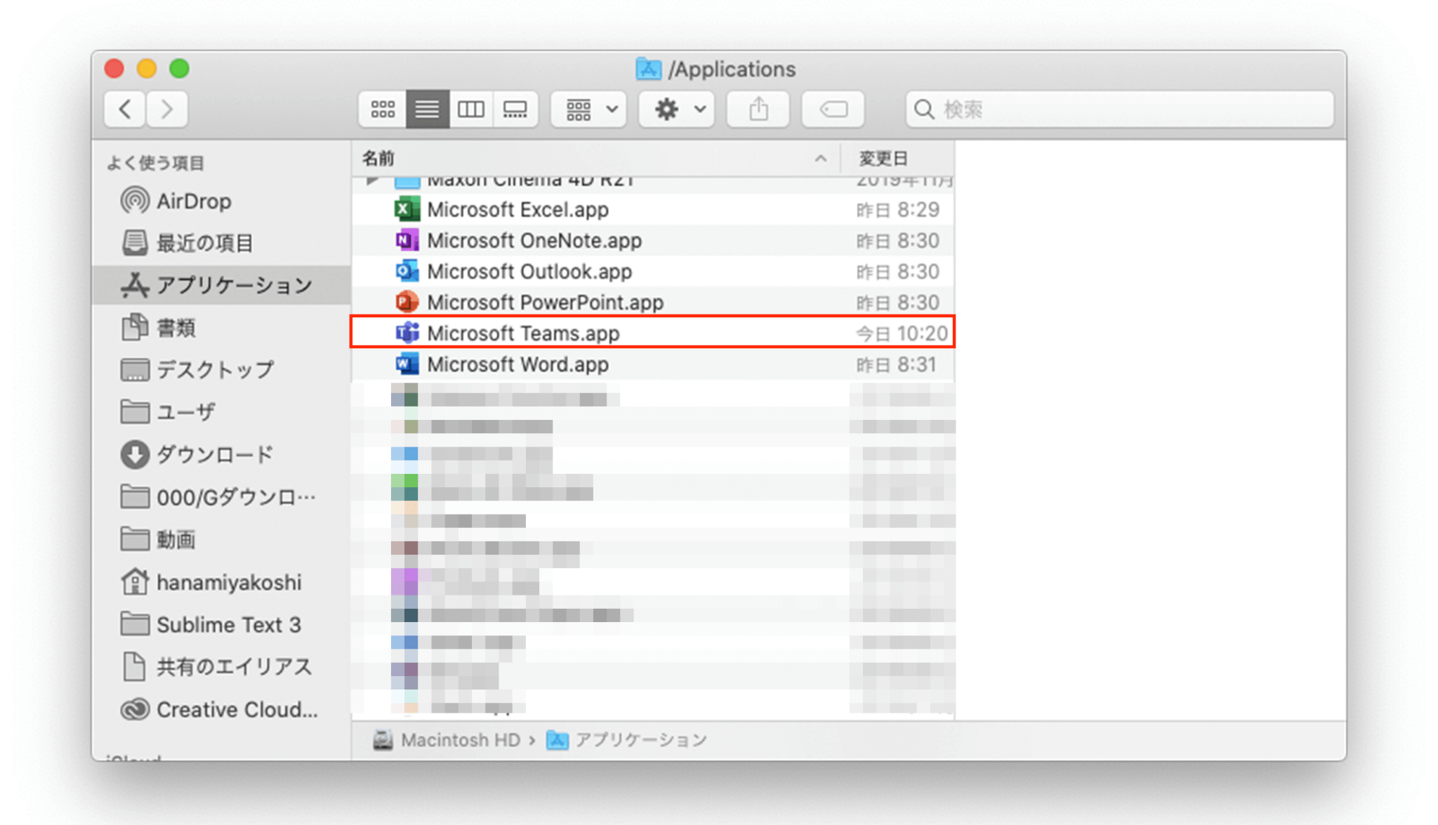 アプリケーションフォルダから「Microsoft Teams」をダブルクリック