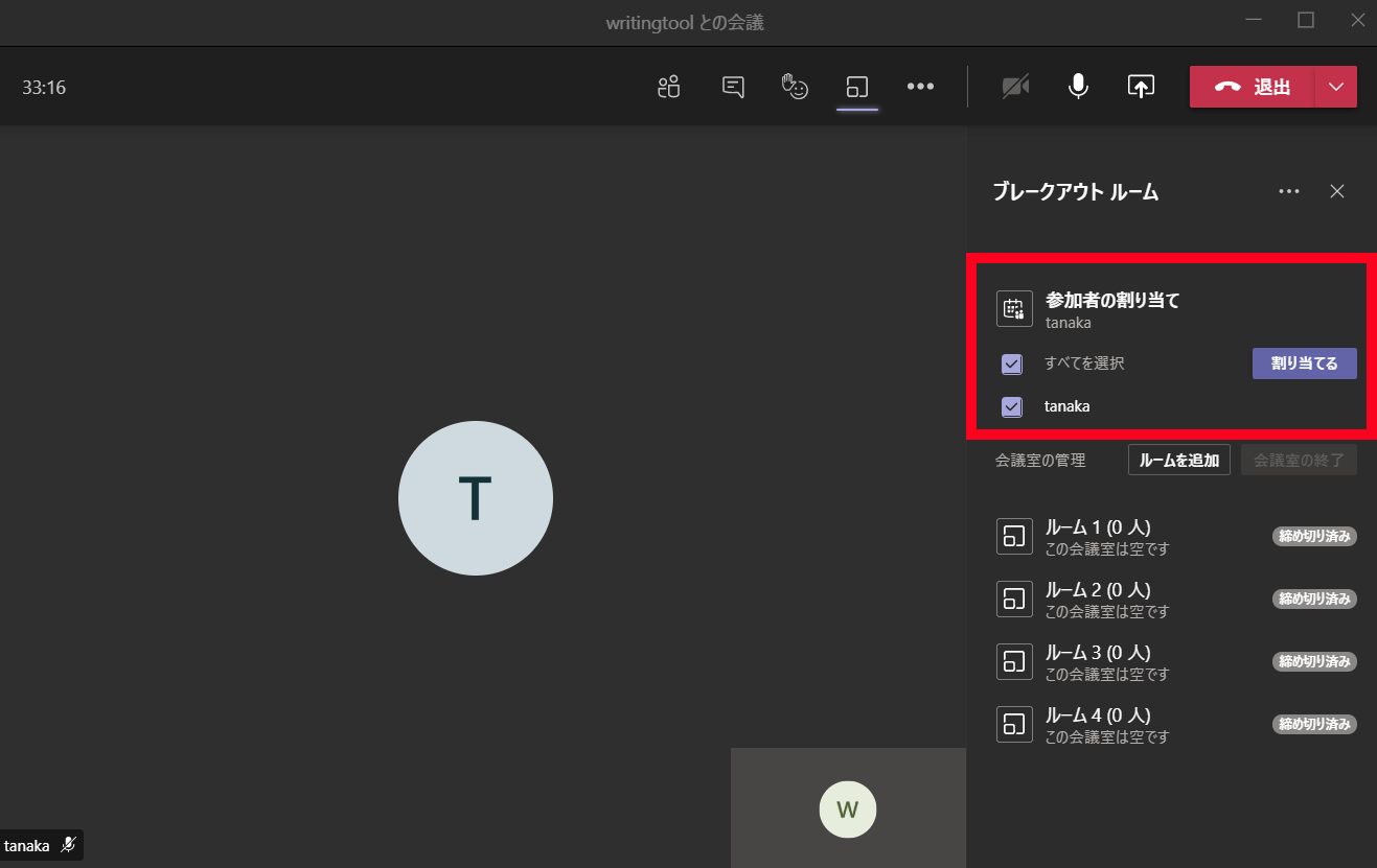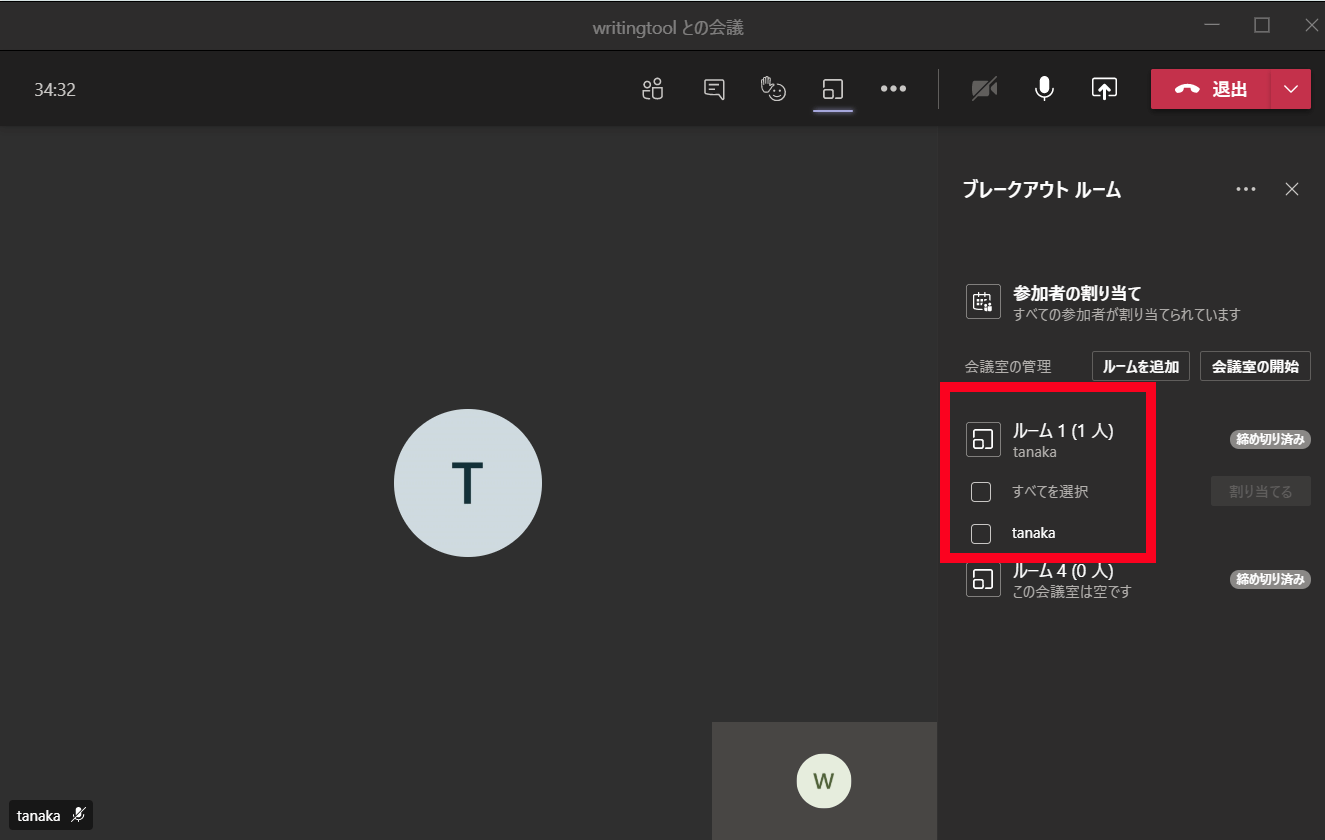 8. 選択した参加者を割り当てたいブレークアウトルームを選択します。