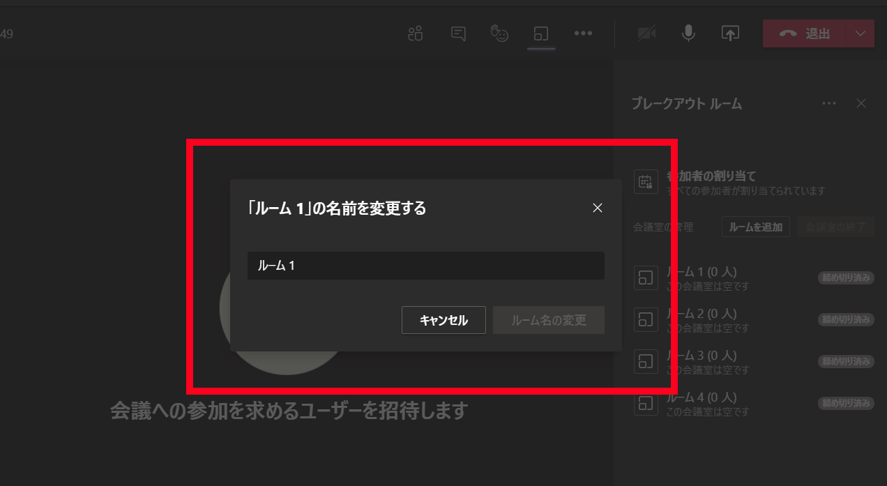 会議開催者は、会議中に最大50のブレークアウトルームを作成できます。
