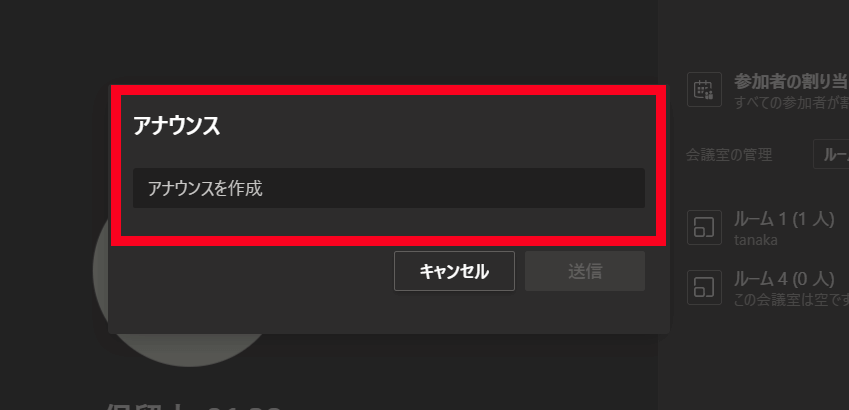 12. アナウンスの作成欄が表示されるので、必要なお知らせを入力し、「送信」を選択しましょう。