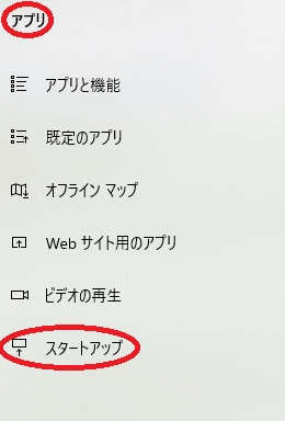 「アプリ」をクリックすると、一覧表示の中に「スタートアップ」があるので選択してください。