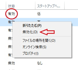 これを「無効」にするにはMicrosoft Teamsを右クリックするか、「有効」となっている部分を右クリックしてください。
