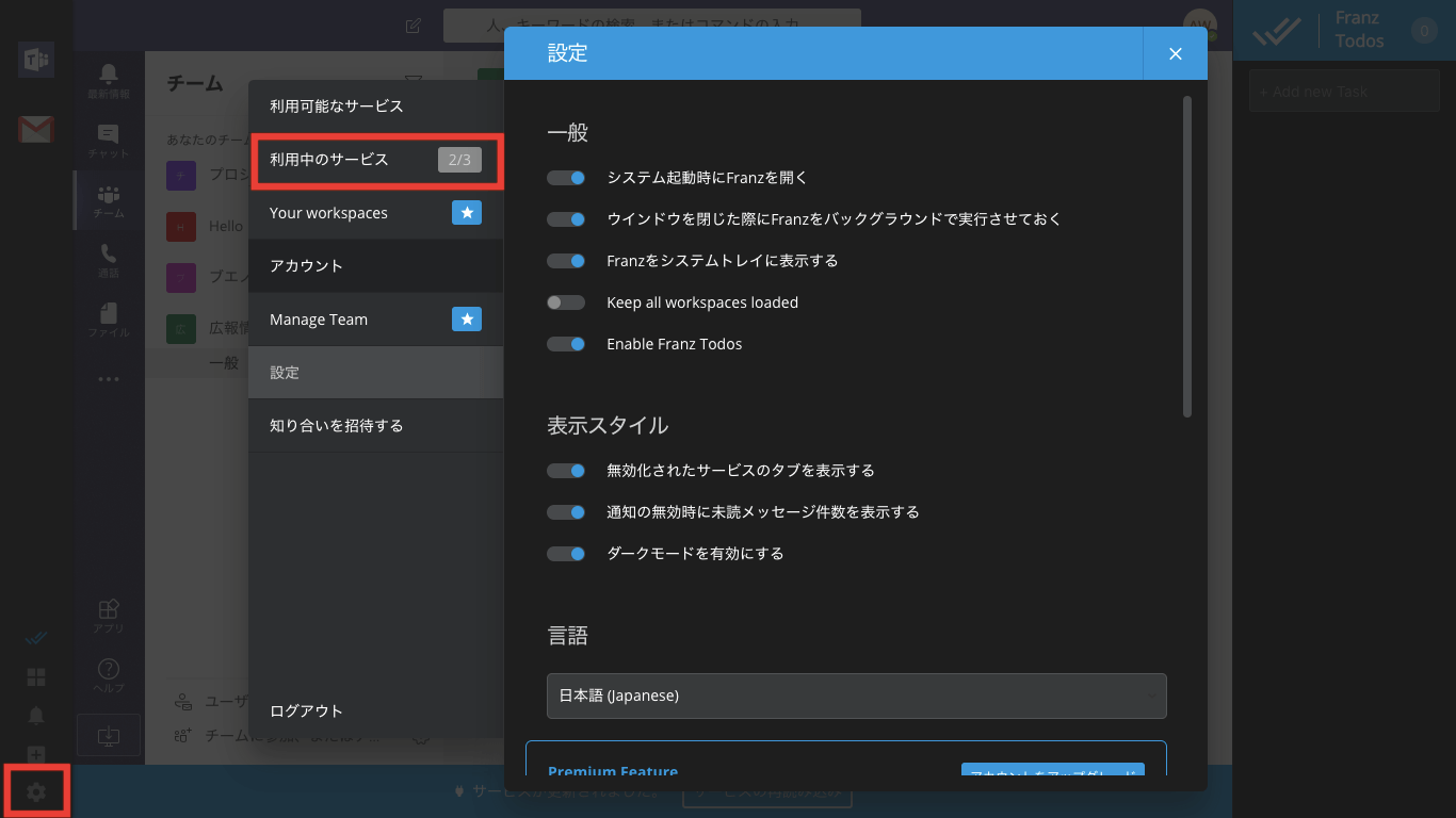 ※登録できないときには、一度Franzを再起動してからお試しください。