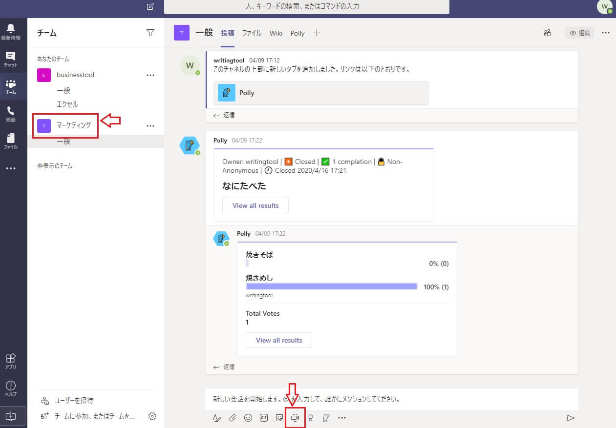 Teamsで会議をするためには、まず参加者を招待する必要があります。まずチャネルの画面からチームを選んでください。