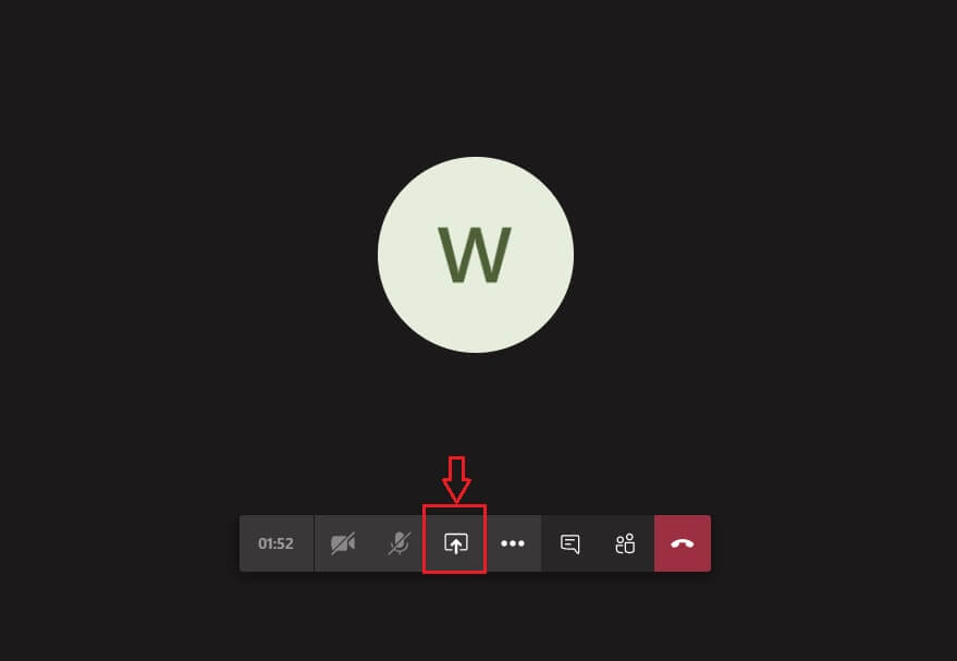 会議中の画面の下部にバーが出るので、「共有」アイコンをクリック。