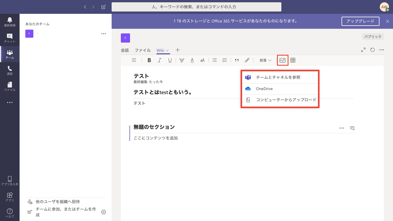 TeamsのWikiでは、編集画面からコンテンツの追加や削除、変更を行えます。