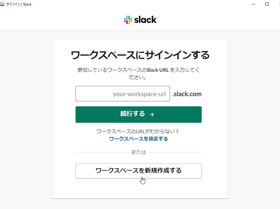 テスト用など新規でワークスペースを作成する場合は、サインイン画面から新たにワークスペースを作成しておく必要があります。