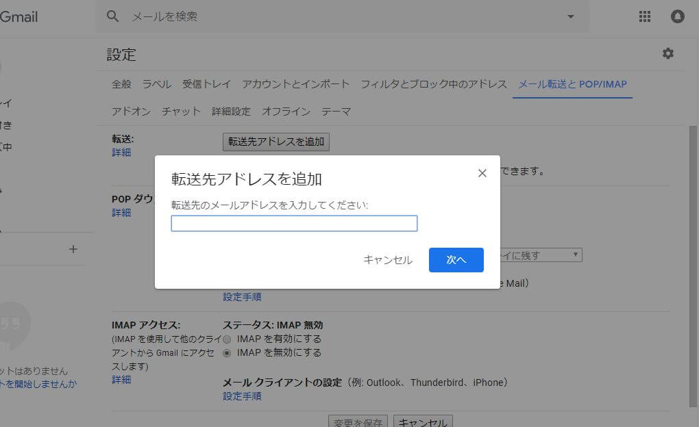 Gmail上で転送先指定