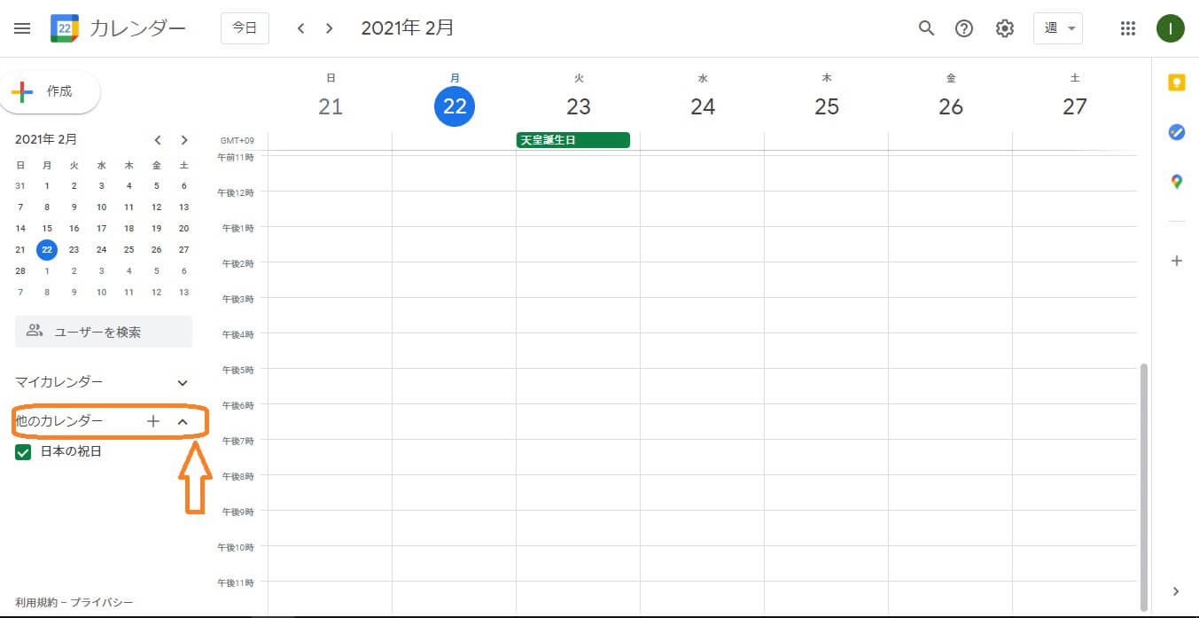 カレンダーの左側にある、他のカレンダー+ボタンをクリックすると追加のカレンダーを作成できます。
