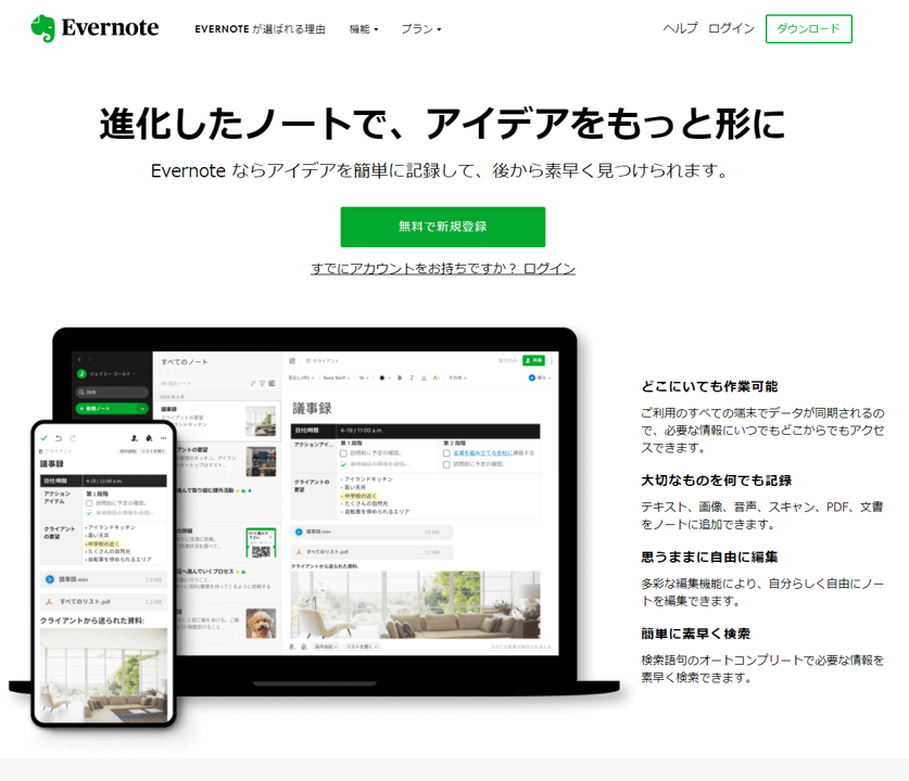 物理的な書類は、その場にいないと閲覧できませんが、EvernoteでスキャンすればきれいにPDFなどの形式で保存でき、どこからでもアクセスできるようになります。