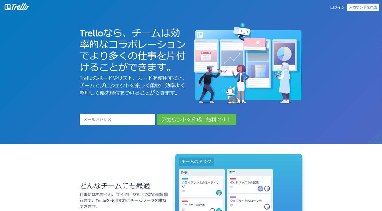 Trelloは「カンバン方式」という確立された業務メソッドを、クラウドで実行することができるサービスです。
