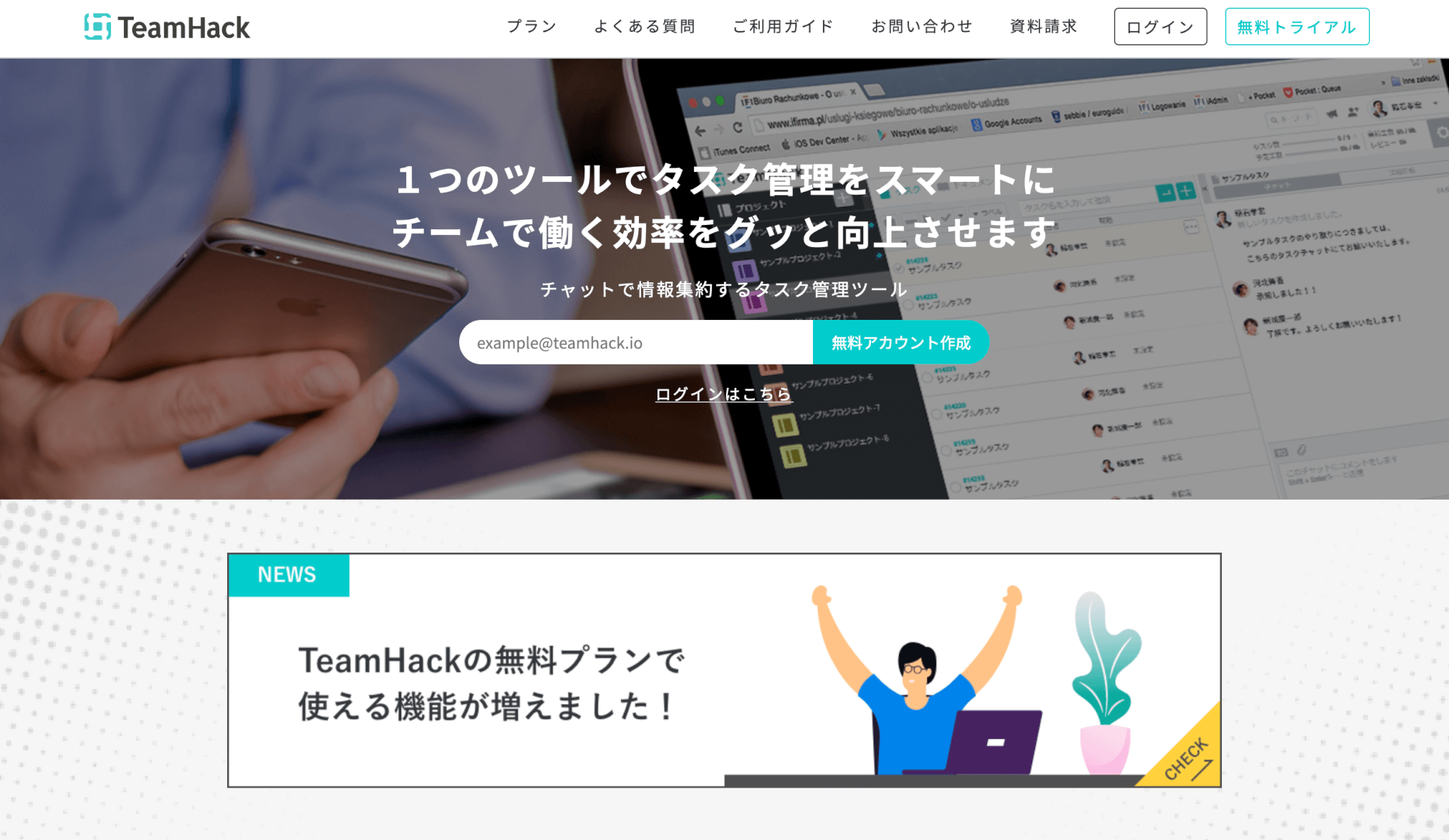 タスク管理ツール「TeamHack」は、タスク管理だけでなく仕様書の共有や作業時間計測、情報共有など、複数のツールをまとめてくれます。