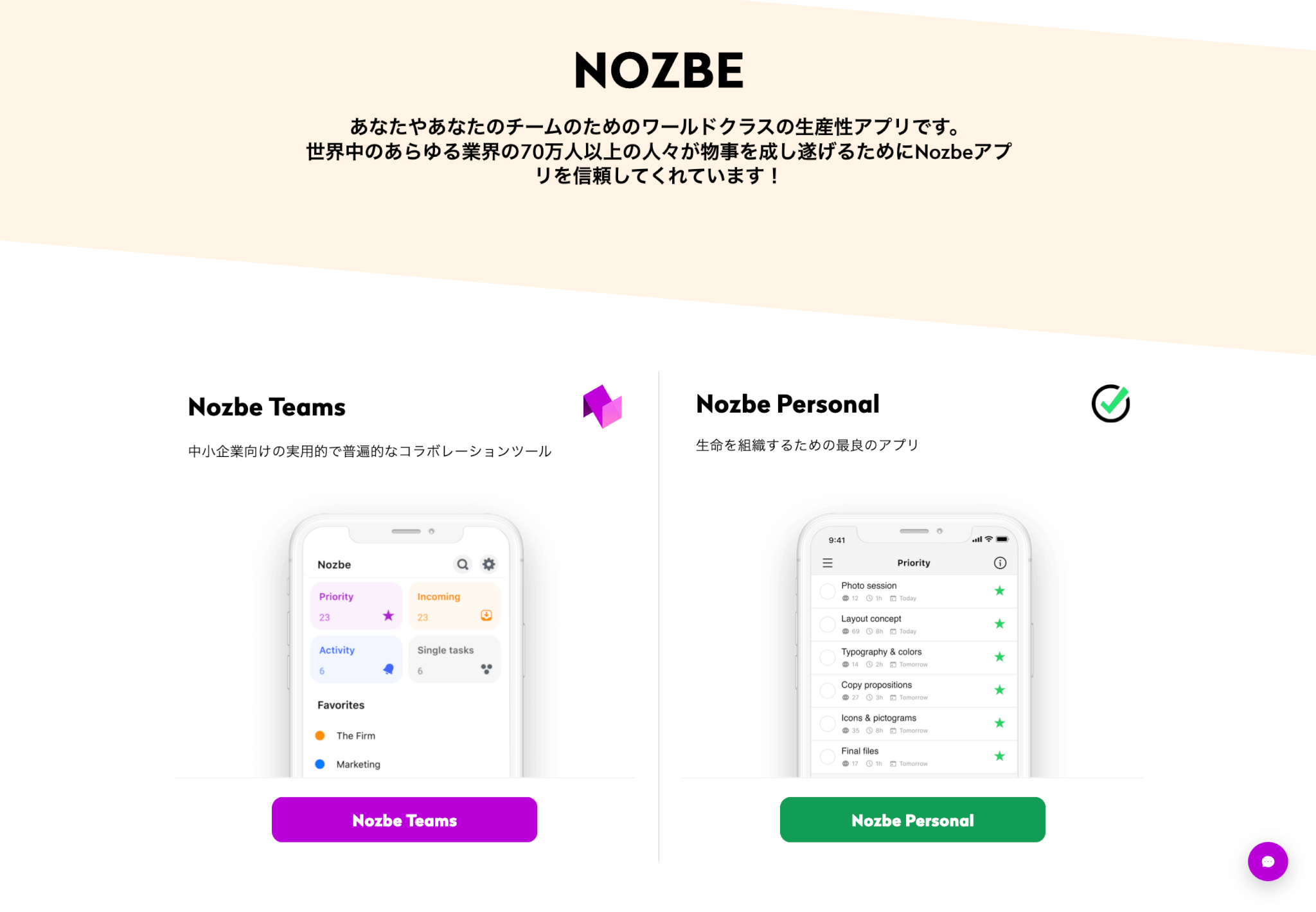| Nozbe | 無料トライアル有り | Solo / Duo