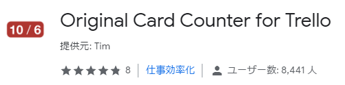 Original Card Counter for Trelloは、トレロに含まれるすべてのカードの数を表示する機能です。
