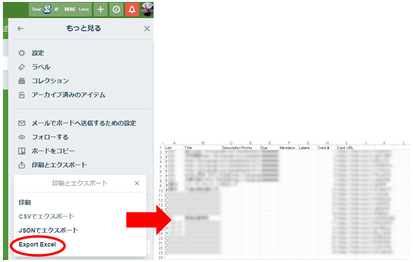トレロとは別にエクセルなどでドキュメントを作成したい場合に、個別にカードの内容を書き写す手間を減らせます。