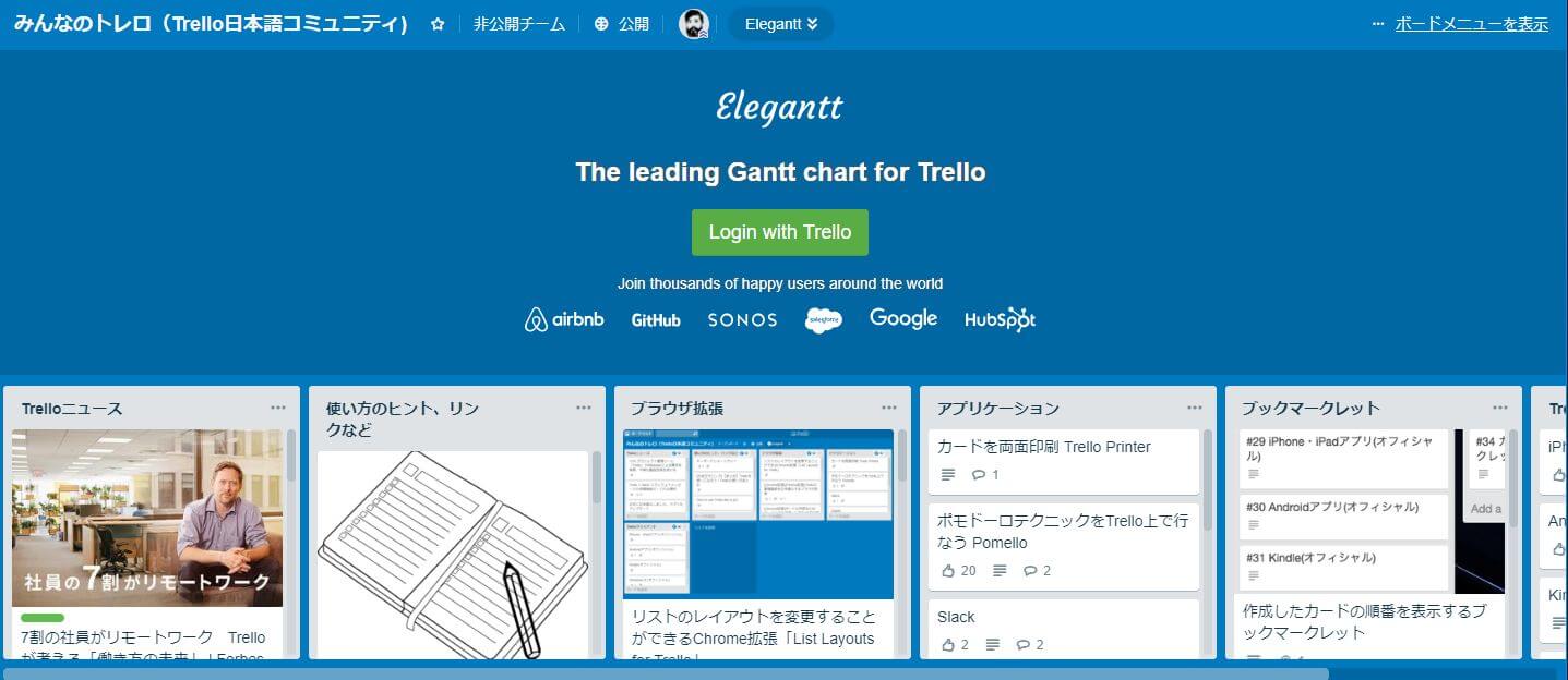 Eleganttを活用した、Trelloのガントチャートは簡単に使えるので、ビジネスシーンで活用する愛好者も多いです。