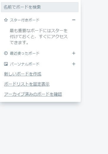 ホーム画面左上のボードリストをクリックすると以下の画面が出るので、「新しいボードを作成」をクリックします。